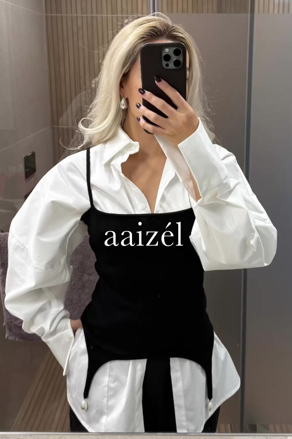 DETACHABLE LAYERED SHIRT DRESS in WHITE/BLACK