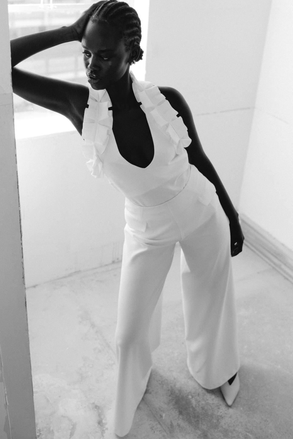 V-NECK RUFFLE HALTERNECK TOP