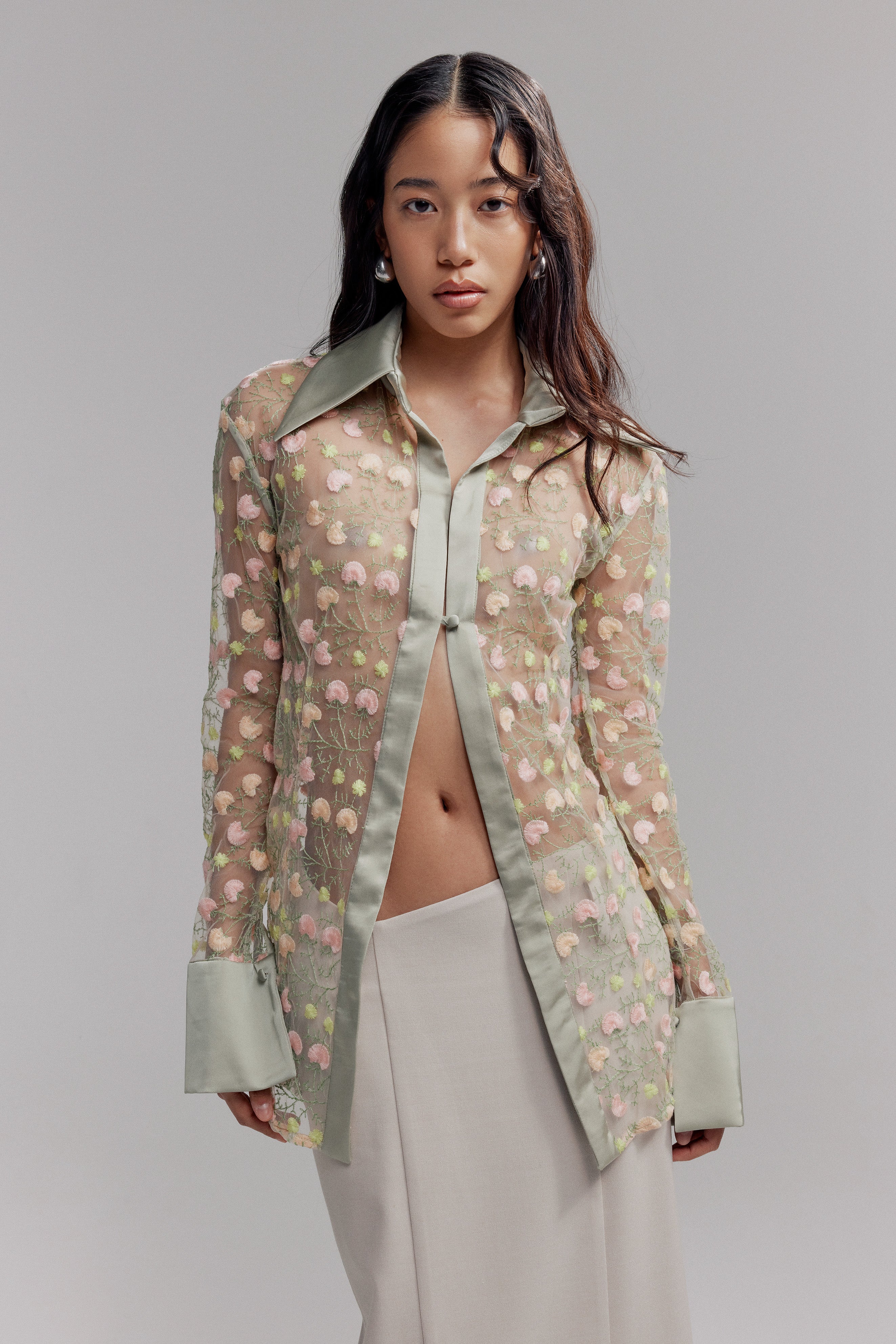 FLORAL EMBROIDERED LACE SHIRT SAGE/PINK