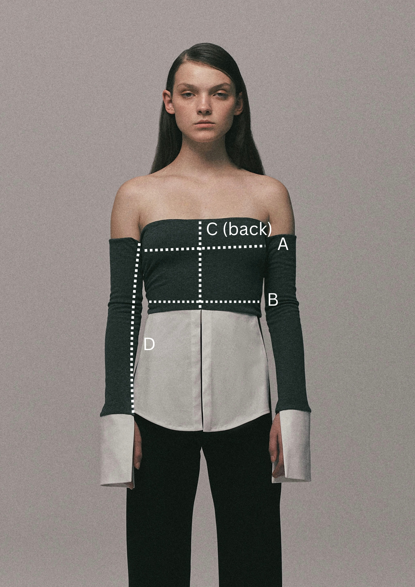 OFF SHOULDER CONTRAST CUFF SHIRT TOP in BLACK/WHITE
