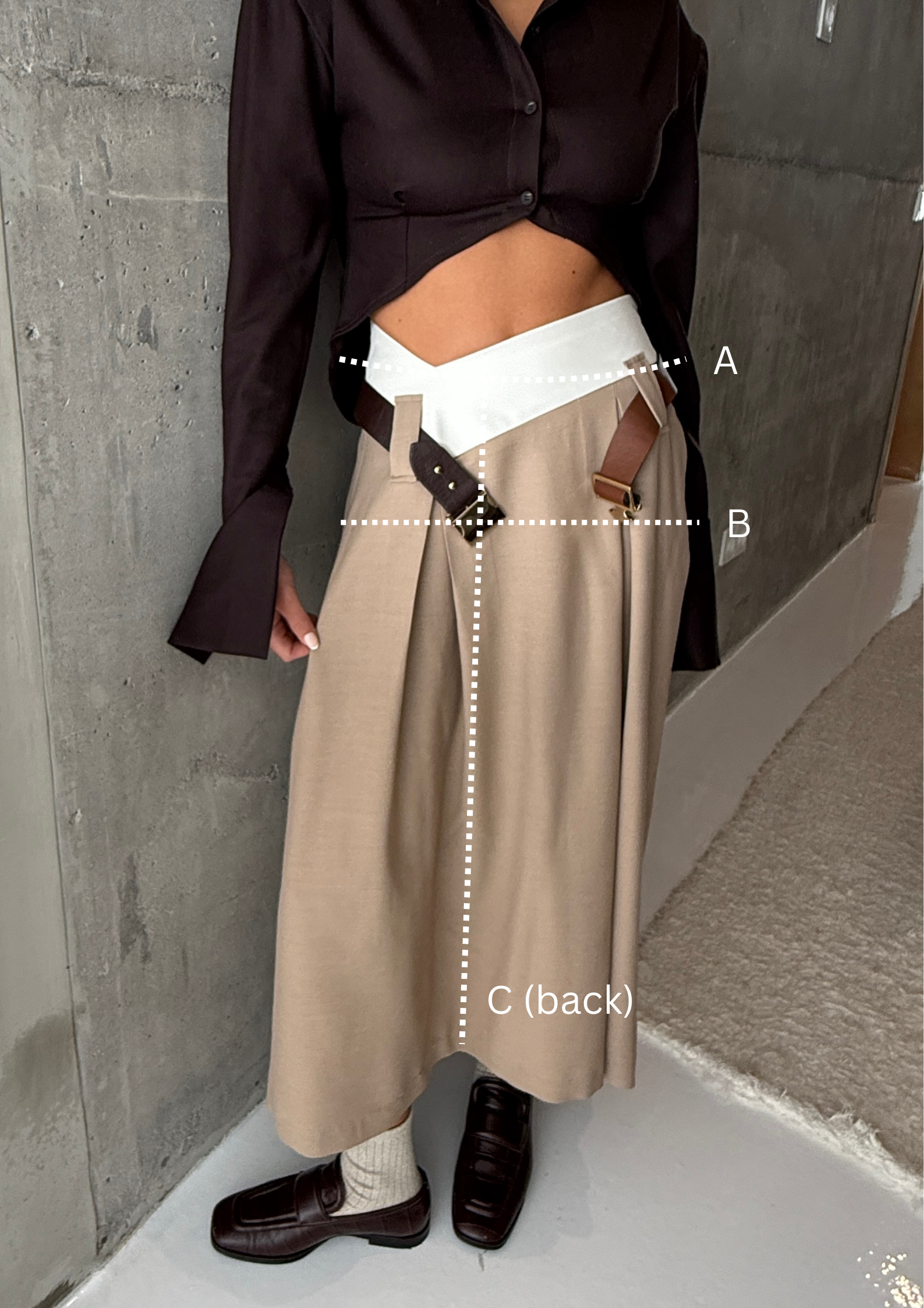 TAILORED ANGLED WAIST LONG SKIRT in IVORY/BEIGE