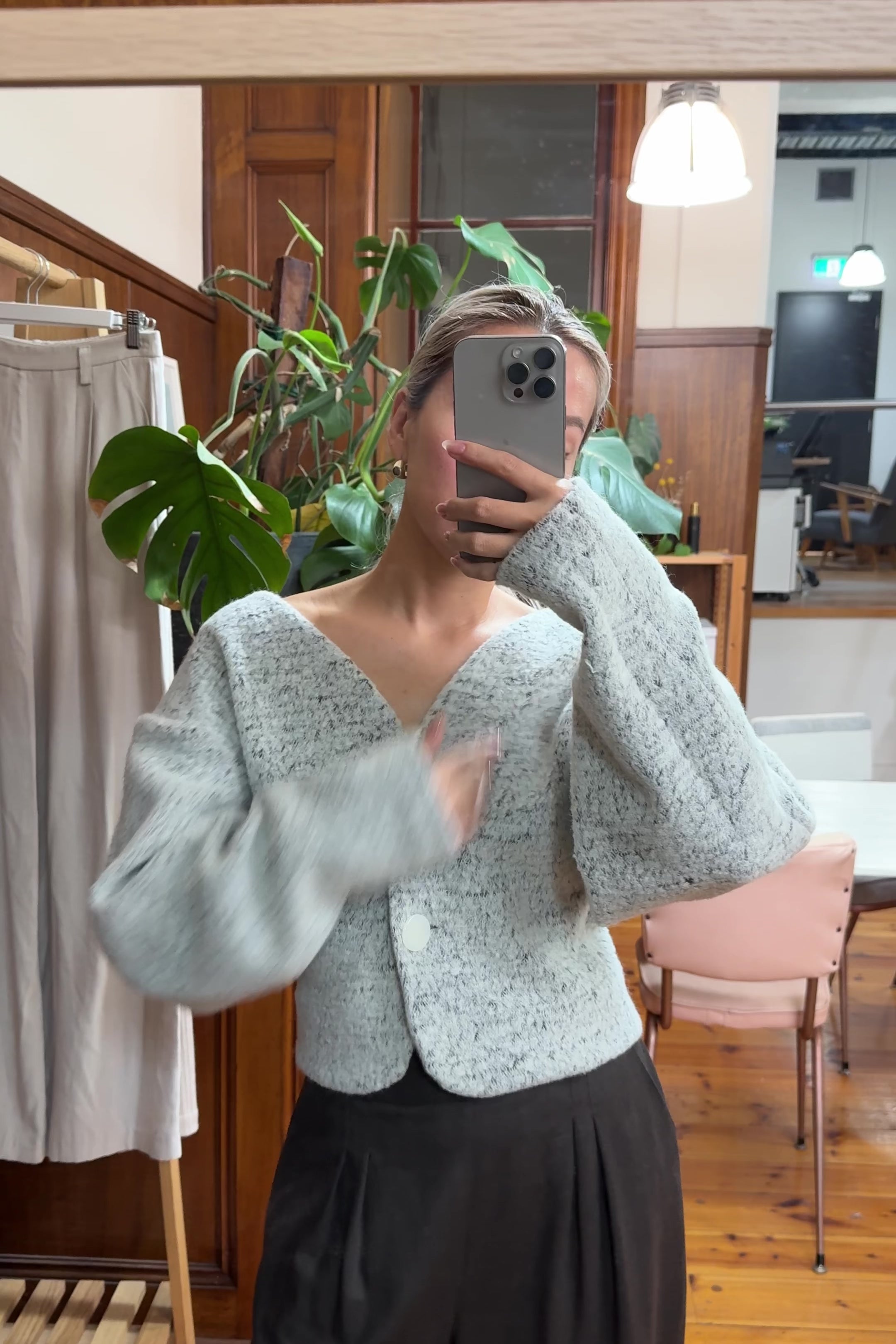 VOLUME SLEEVE CARDIGAN in ICY GREY MELANGE