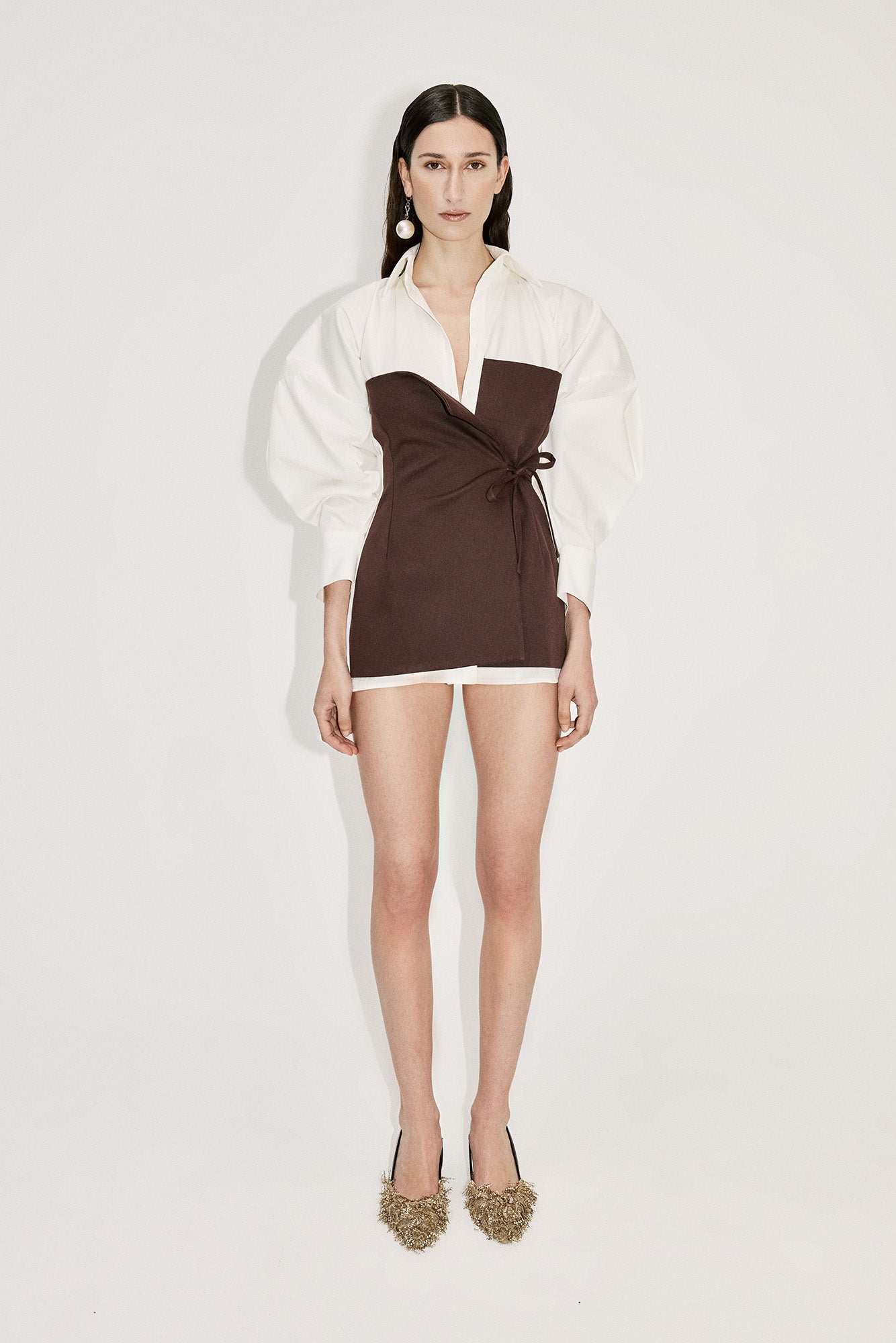 Embrace the art of layering and make a statement with the Volume Sleeve Deconstructed Wrap Shirt Dress. Merging contemporary design with timeless fashion, this mini dress is the perfect fashion forward look for any occasion.